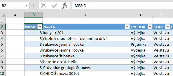 Data se vloží do listu jako standardní tabulka, kterou je možné dále použít ve vzorcích nebo jako zdroj dat pro kontingeční tabulky apod.: